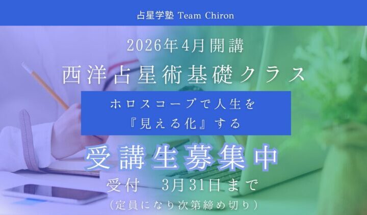 私が運営する占星学塾Team Chiron「西洋占星術基礎クラス」募集のお知らせです。